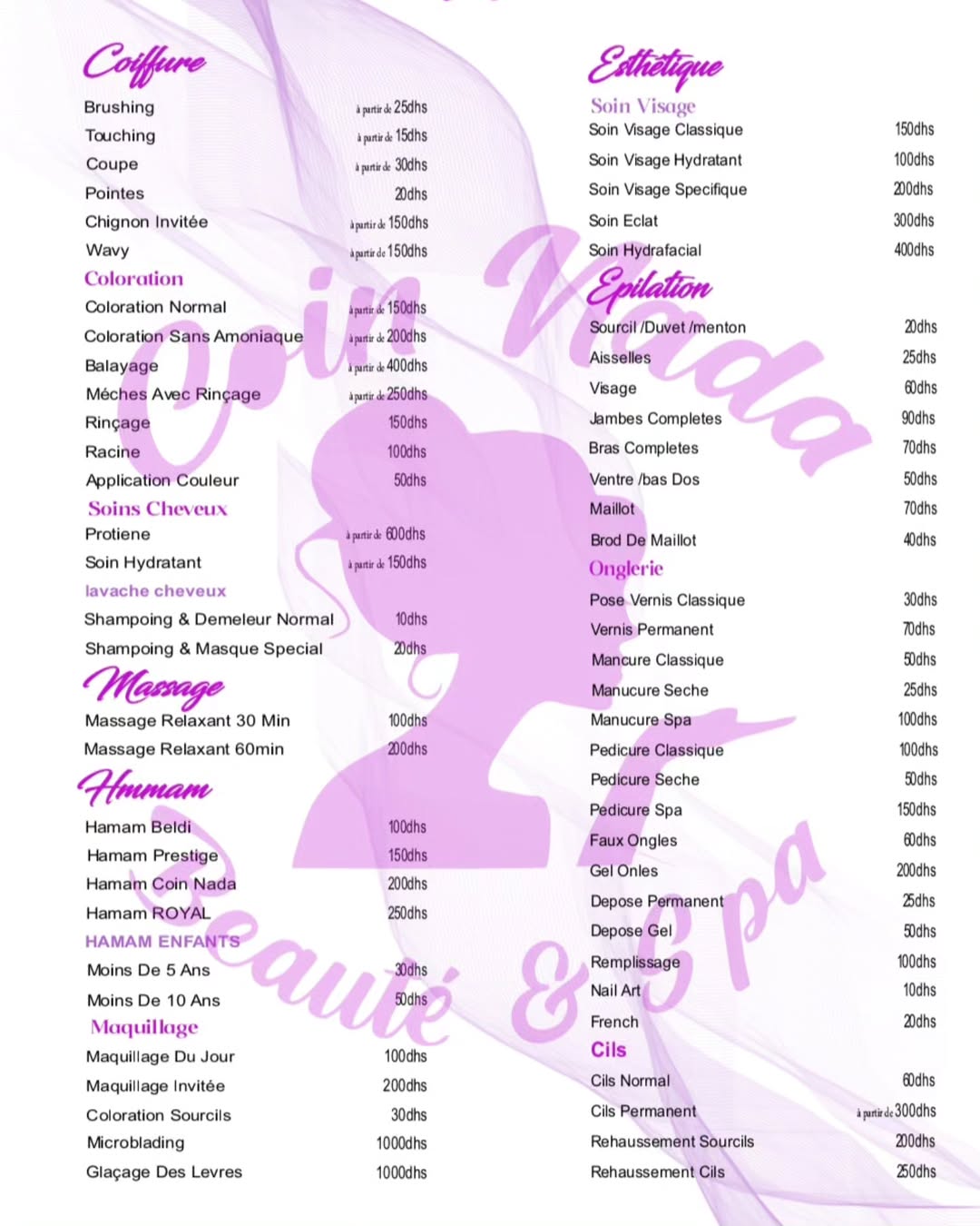 100% FemmesUn espace dédié exclusivement aux femmes, où beauté, détente et élégance se rencontrent. Coiffure, esthétique, hammam et soins personnalisés dans une ambiance chaleureuse et raffinée.